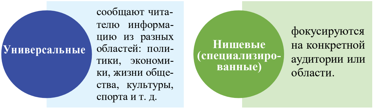 В зависимости от содержания издания делятся на универсальные и нишевые (специализированные):