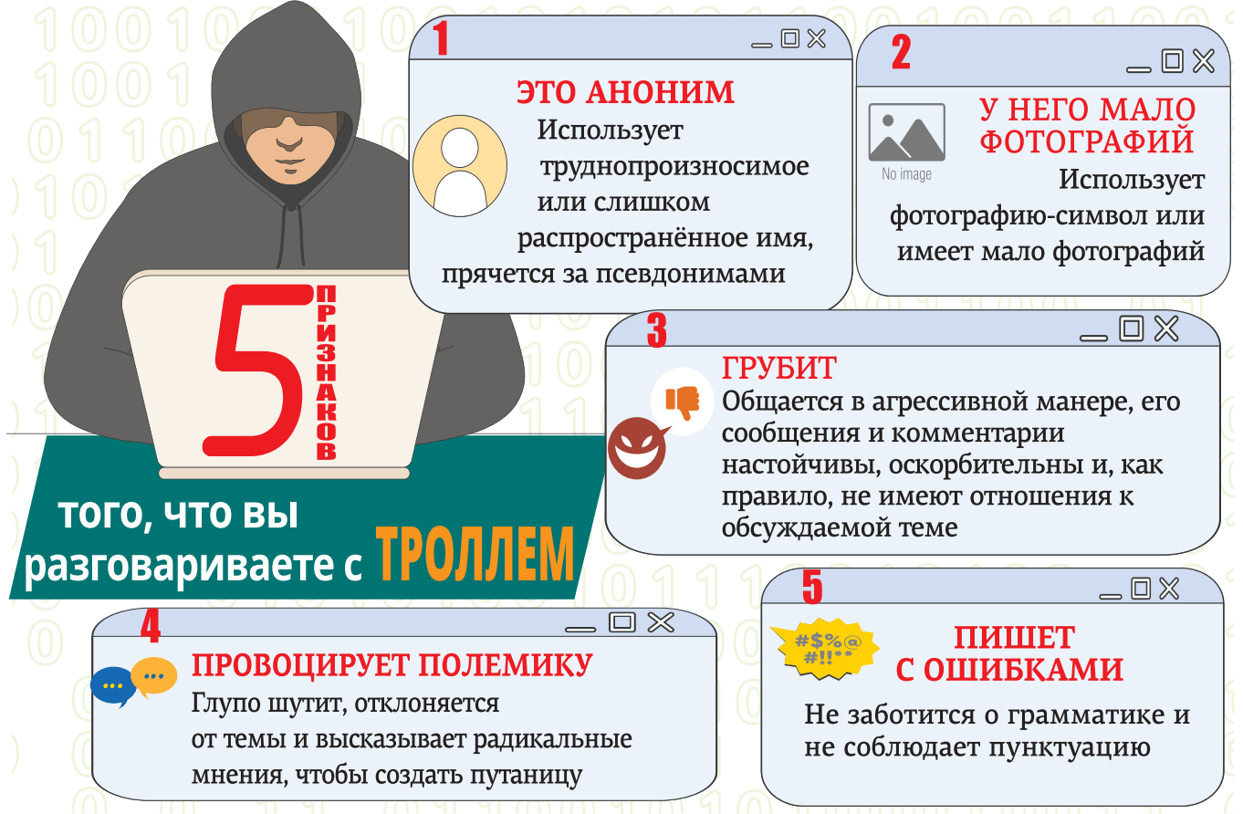Тролль размещает доброжелательныеоскорбительные комментарии, провокационные высказывания, часто не связанные с предметом разговора, с целью отвлечь внимание или вызвать негативную реакцию читателей. Его задача не в том, чтобы доказать свою правоту, а в том, чтобы заставить других сомневаться в их собственных суждениях.