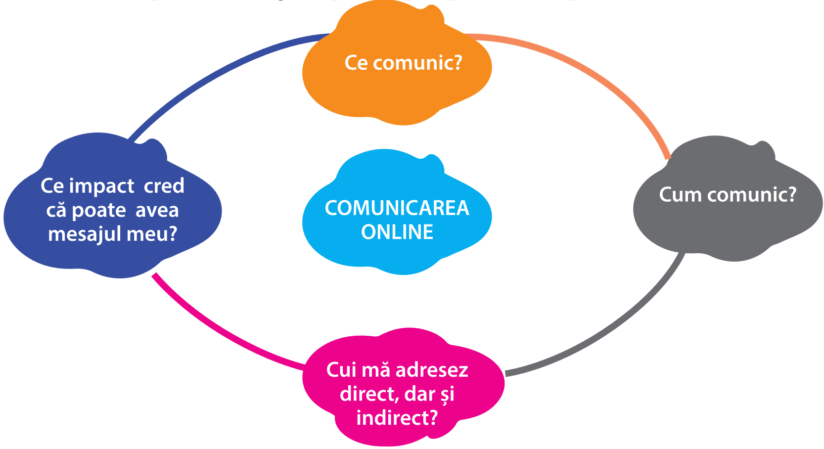 Definitorii pentru e-reputația individului sunt cultura comunicării și neticheta. Adolescenții sunt tentați să fie rebeli: parte – din cauza elanului vârstei, parte – din dorința de a fi originali. În comunicarea online, vom încerca să ne raportăm întotdeauna la conținuturile lansate public, la imaginea publică prin prisma celor patru întrebări etice: