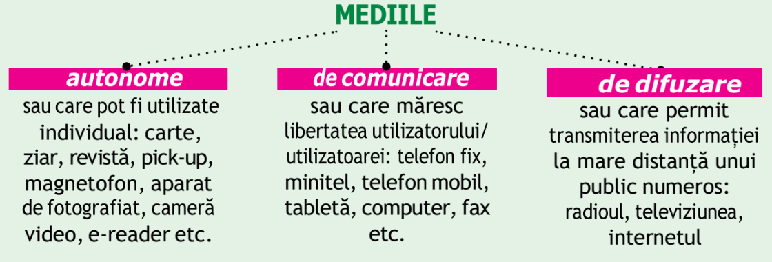 Mijloacele de comunicare și de informare în masă (mediile) sunt astăzi variate: autonome, de comunicare și de difuzare.