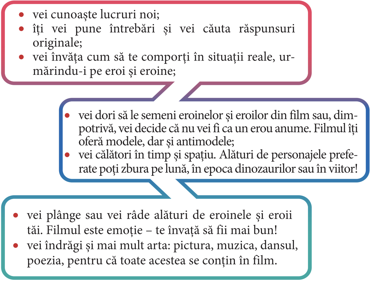 - Reține cele „7 funcții magice” ale filmului. Vizionând un film: