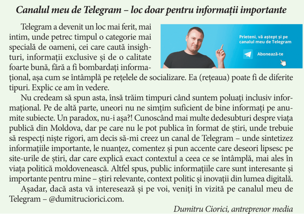 Imaginați-vă că reprezintă capitala Chișinău în anul 2050. Transmiteți un mesaj tinerilor și tinerelor de vârsta voastră din viitor. Ce le veți spune?În anul 2023, opozantul rus Alexei Navalnîi a obținut Premiul Oscar pentru cel mai bun documentar de lung metraj cu filmul „Navalnîi”. Filmul explorează pericolele cu care s-a ciocnit activistul, otrăvirea lui și lupta cu sistemul corupt din Rusia. Documentarul include și un puternic mesaj adresat poporului rus: