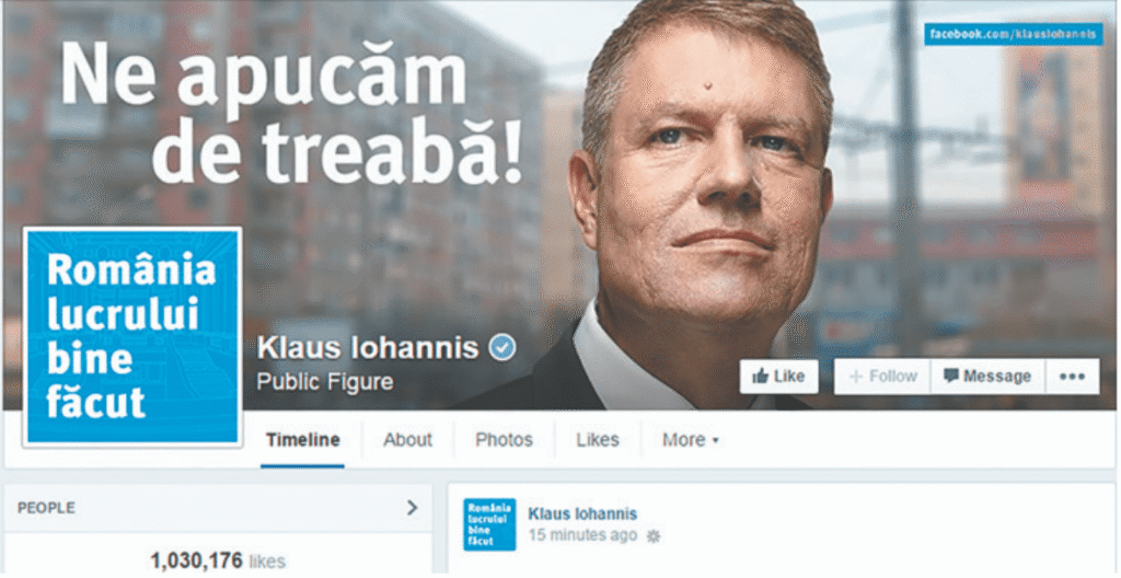 Cazul lui Klaus Iohannis, președintele României, este cel mai elocvent exemplu care arată forța social media. Inițial, acesta a fost considerat perdant și fără mari șanse în fața contracandidatului său, Victor Ponta. Relativ anonimul primar de Sibiu s-a transformat în politicianul cu cele mai multe like-uri printre politicienii din Europa, devansându-i pe Angela Merkel și François Hollande. Iohannis a câștigat alegerile prezidențiale ajutat de un milion de fani, iar pagina sa de Facebook a devenit cea mai mare comunitate din jurul unui om politic în mediul online. Campania lui Klaus Iohannis de pe Facebook a fost gestionată de o echipă de tineri și tinere care au crezut în candidatul lor, au realizat mesaje media de calitate, cu fotografii profesioniste, cu sute de mesaje video simple, dar corecte, cu transmisiuni live, cu postări al căror conținut coerent și deschis a fost pe placul internauților/internautelor. Mesajul a fost de bun-simț și nu a subestimat capacitățile de analiză critică ale audienței, publicul-țintă fiind tinerii și tinerele cu vârstă între 18 și 35 de ani din mediul urban, cu alte cuvinte, nativii digitali și nativele digitale.