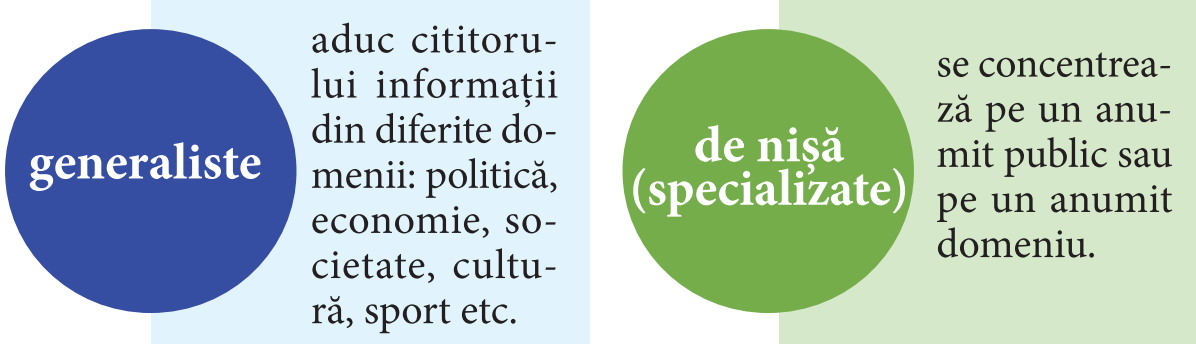 După conținutul difuzat, publicațiile se împart în generaliste și de nișă (specializate):