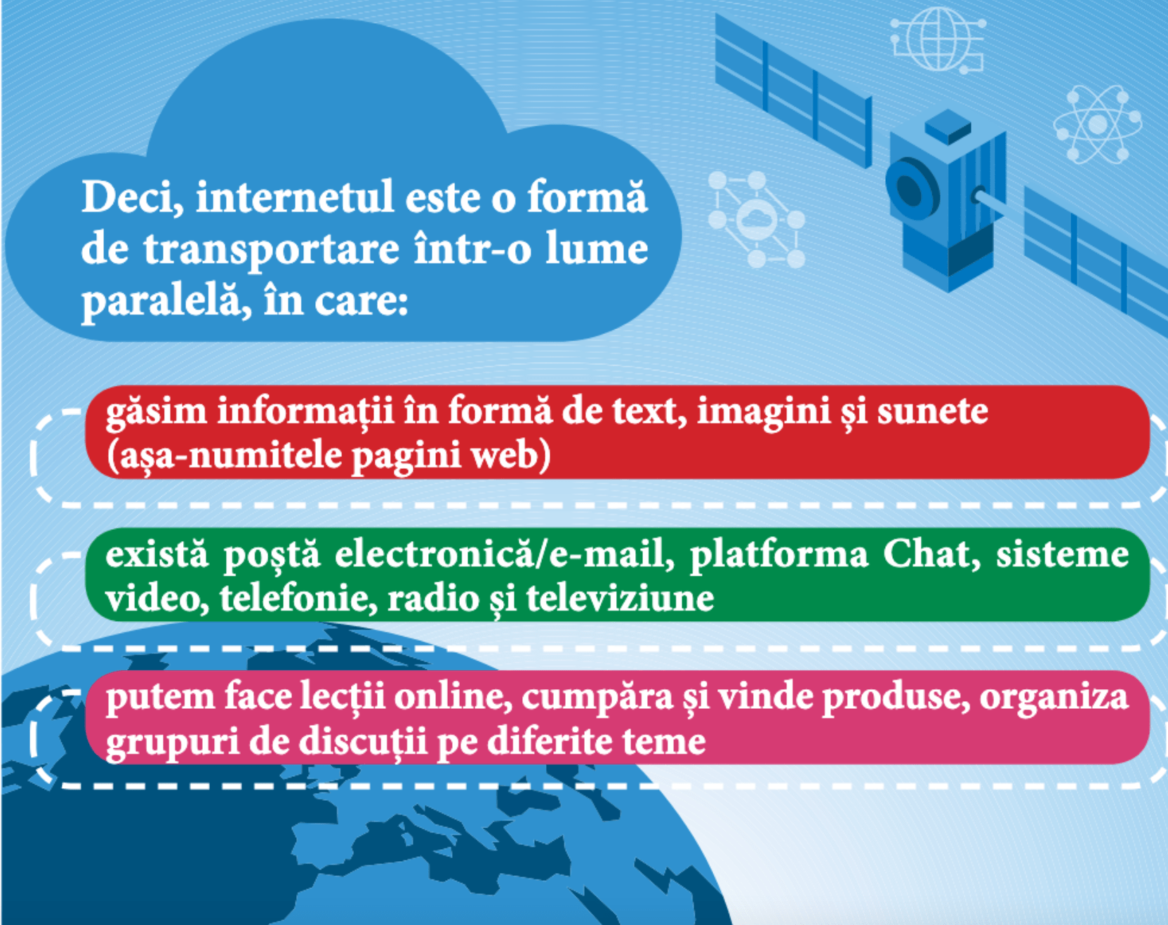 InternetulInternetul este o rețea globală, o legă- tură între toate calculatoarele din lume – inclusiv telefoane mobile, televizoare, ceasuri, frigidere inteligente (smart), laptopuri, console Xbox, playstationuri, servere.
