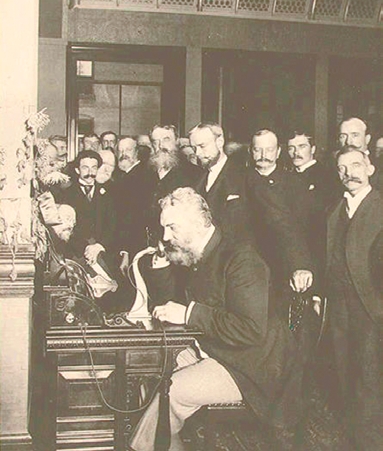 Prima convorbire telefonică inteligibilă a avut loc în martie 1876 la Boston, Massachusett, SUA, când inventatorul telefonului i-a telefonat asistentului său, aflat într-o altă cameră, și i-a spus: „Dle Watson, vino aici, vreau să te văd!” Fraza a devenit celebră pentru că a fost prima dintr-un șir nesfârșit de conversații telefonice. Brevetul de inventator îi aparține lui Alexander Graham Bell, care a realizat transformarea vocii umane în impulsuri electrice și înapoi în voce.