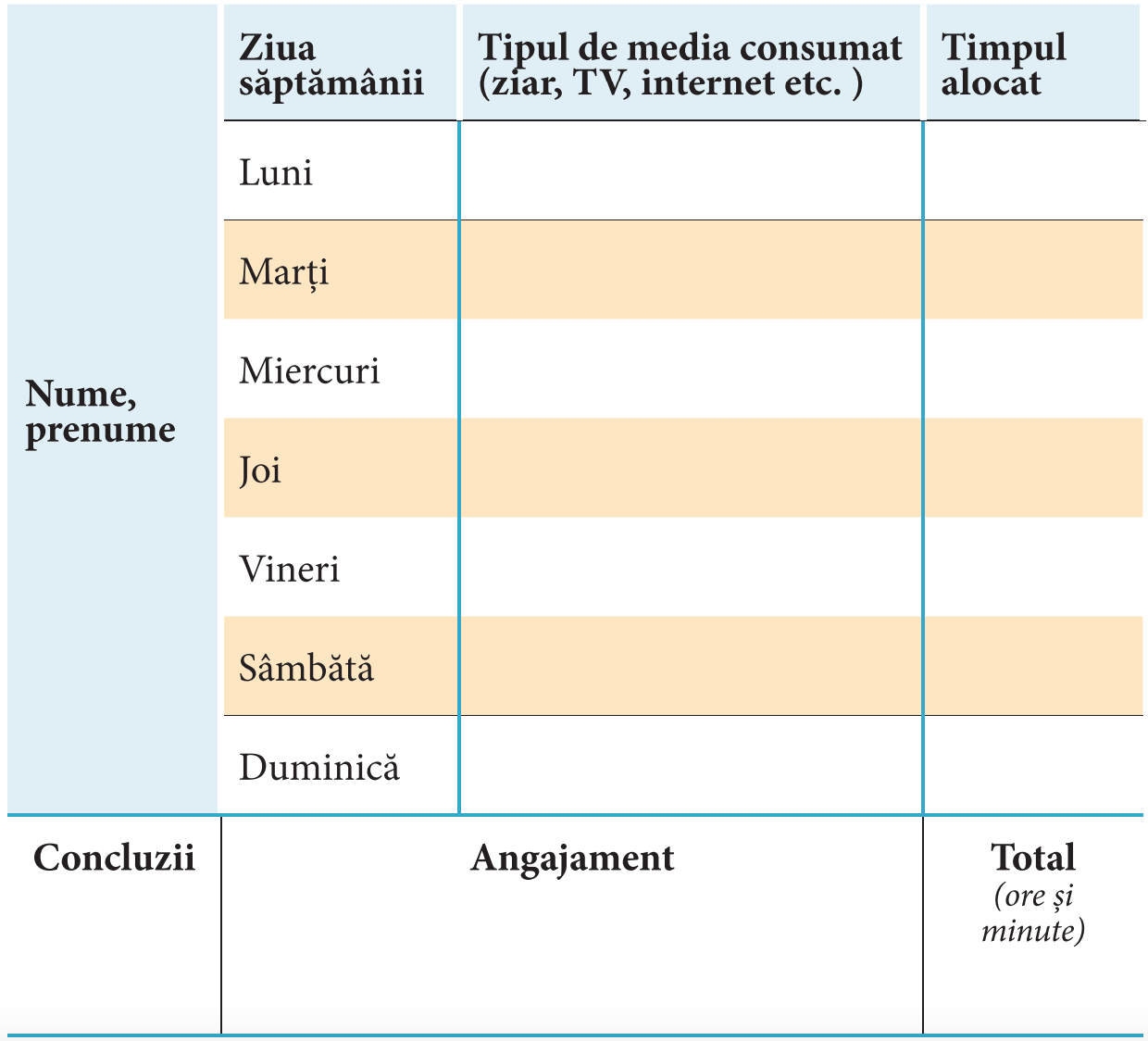 O parte importantă din regimul zilei al unui elev și al unei eleve o constituie activitatea de învățare de la școală, dar și cea de comunicare cu alte persoane. Tot mai mulți copii aleg să socializeze cu prietenii sau cu rudele utilizând mijloacele media: rețelele sociale, chaturile, forumurile de discuție, site-urile, poșta electronică, telefonul mobil.